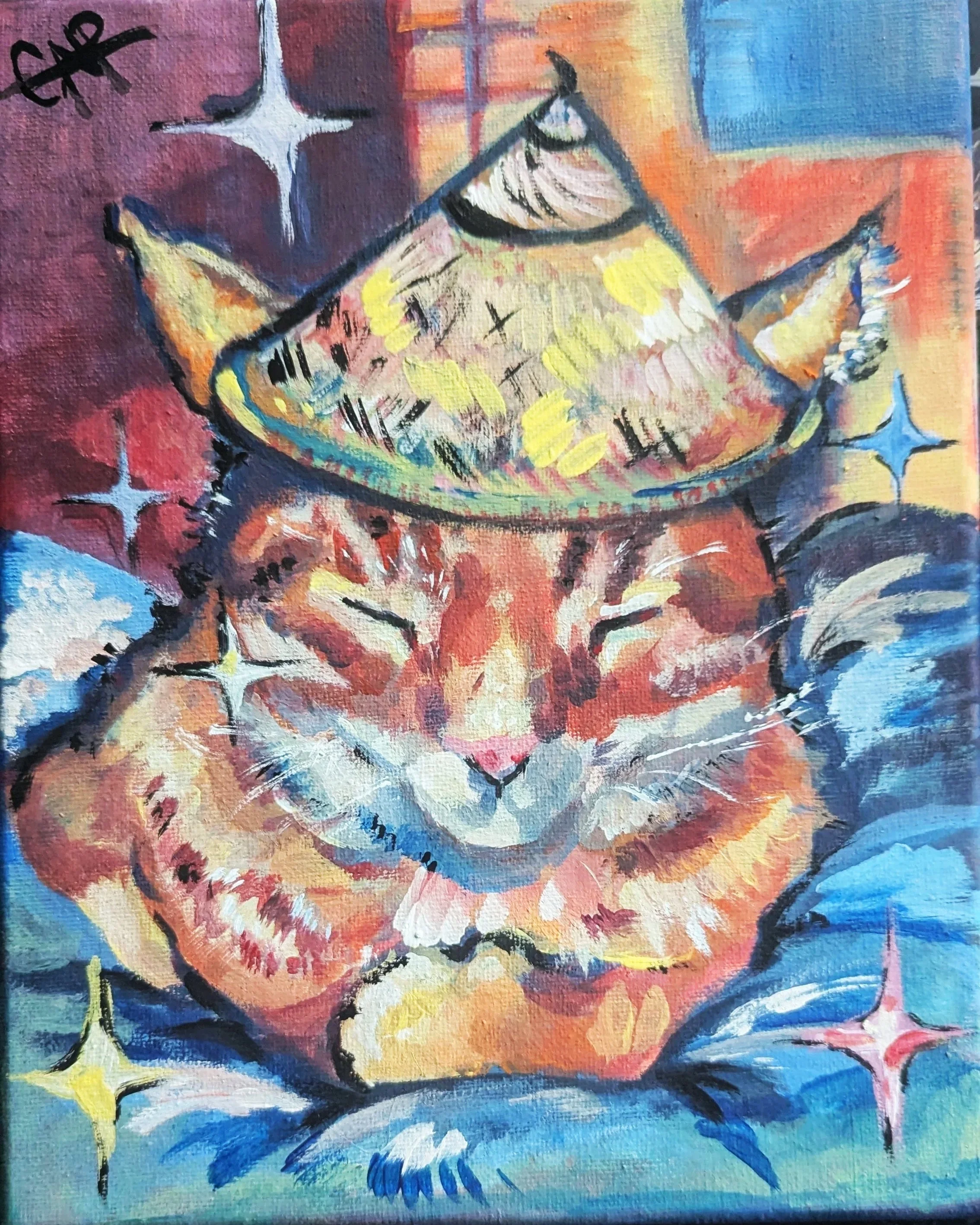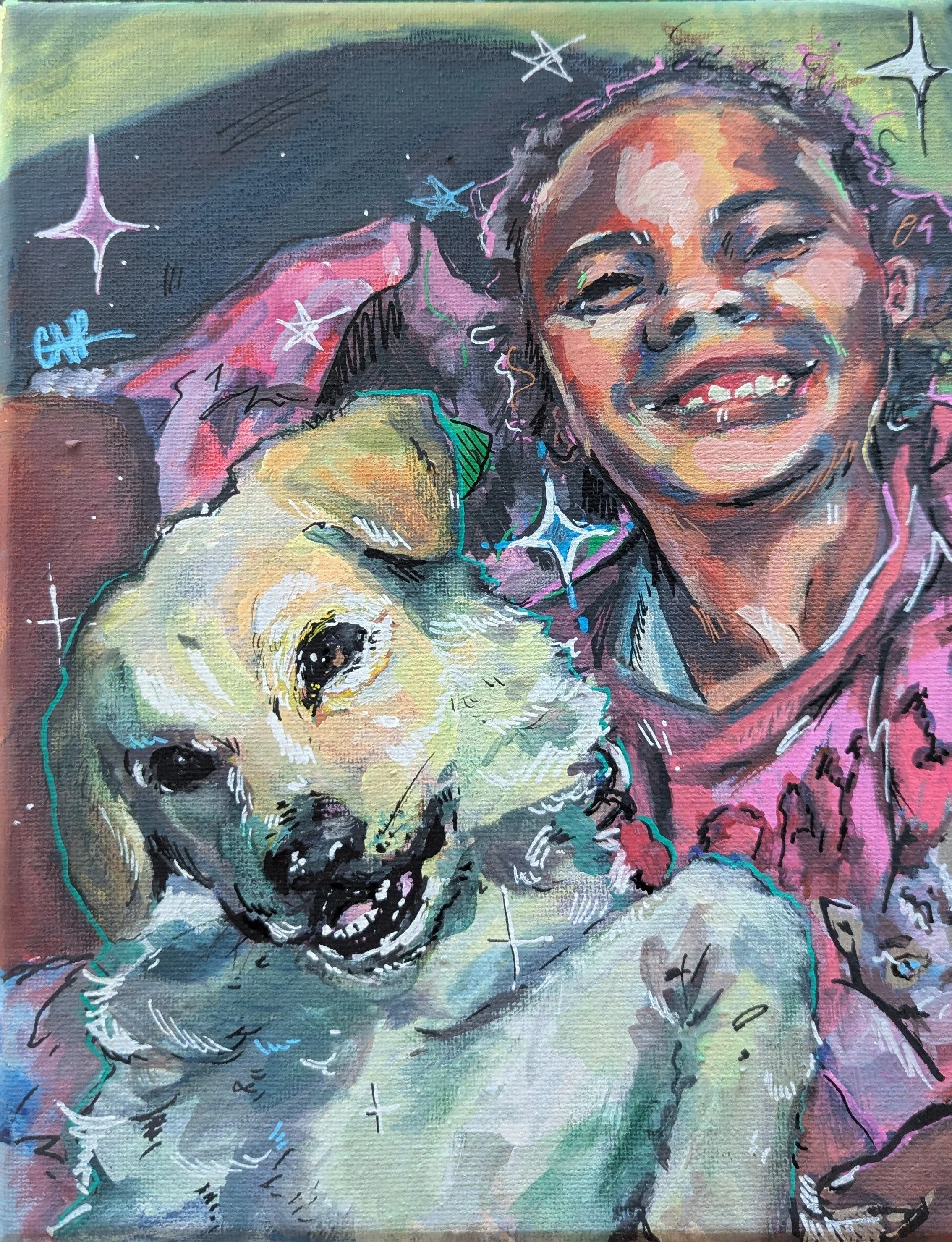 Each physical commission will be on a canvas— either an 8×10 inch or a 2.5×2.5 inch— and the price will vary depending on how many people/animals are in it. Ideally, you will provide reference images and a basic idea of what you want. Depending on other orders, the turnover time will be 1-2 weeks :)